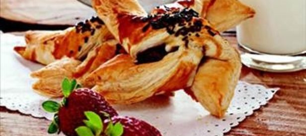MİLFÖYLERİ yumuşayana dek oda sıcaklığında dinlendirin. Dört kenarından kesip, tam ortalarına dilimlenmiş çilek yerleştirin. Üzerine çikolatanın yarısını serpiştirip, kesik milföy parçalarını rüzgar gülü olacak şekilde kapatın. Çırpılmış yumurta sarısı sürüp, kalan rendelenmiş çikolatayı serpiştirin. Önceden ısıtılmış 180 derece fırında kortrol ederek pişirin. Arzuya göre fırından alır almaz pudraşekeri serpip ılık olarak servis yapın